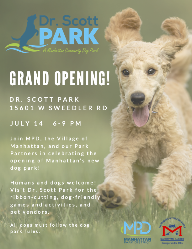 Dog park memberships will be managed through the Manhattan Park District. Dogs are required to be fully immunized, dewormed, and licensed. Dog Park membership applications and rules will be posted on the Manhattan Park District’s website at manhattanparks.org before registration opens.
